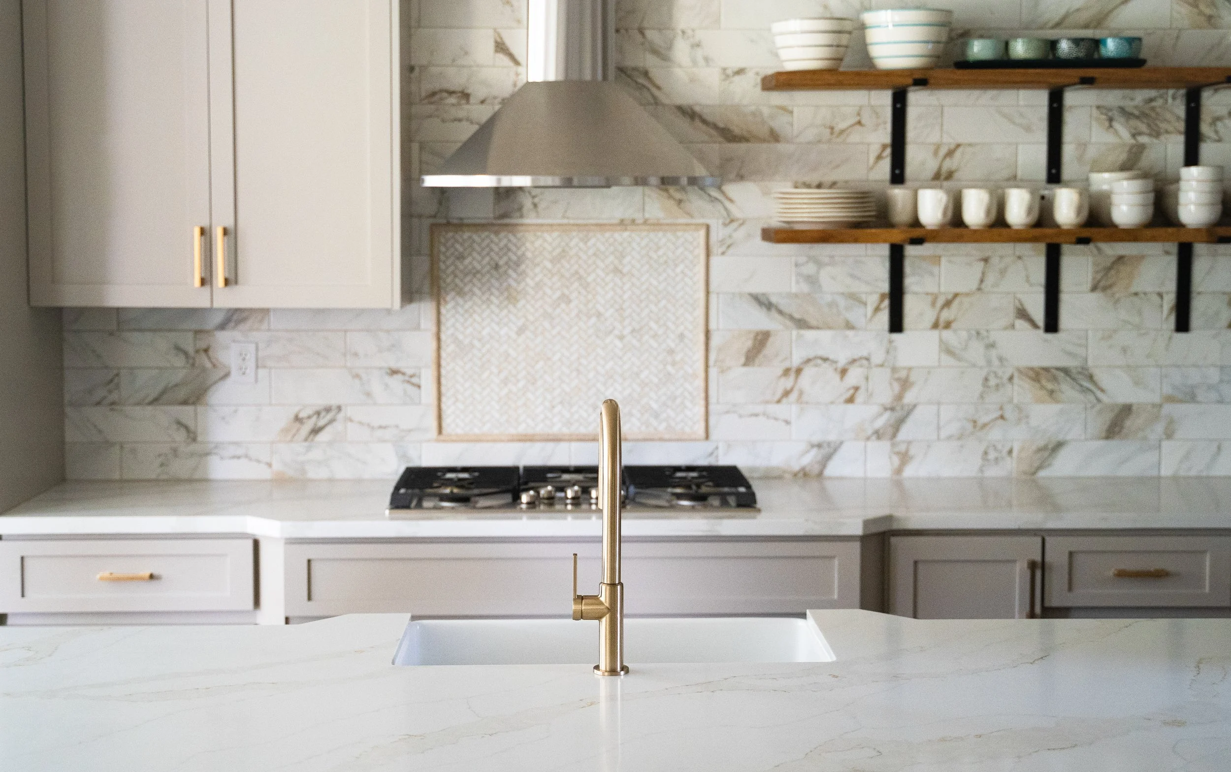 Quartzite is a natural metamorphic rock formed when sandstone is fused under heat and pressure. It often looks like marble but performs more like granite. This trendy material is known for its elegant style.